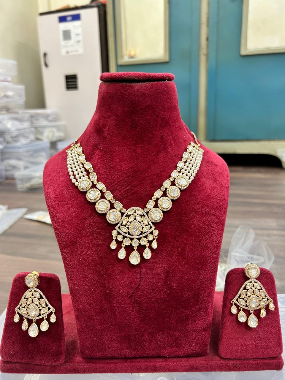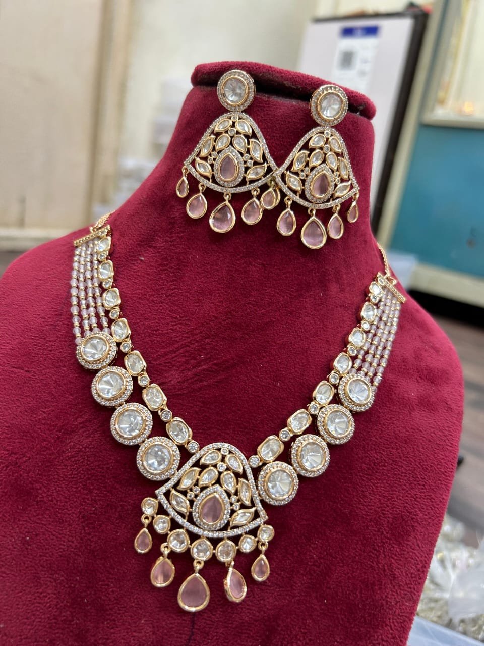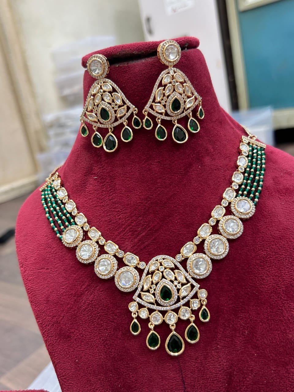 The intricate craftsmanship with dangling stone drops adds a regal touch, making it an ideal choice for weddings, receptions, festive celebrations, and cultural events.
